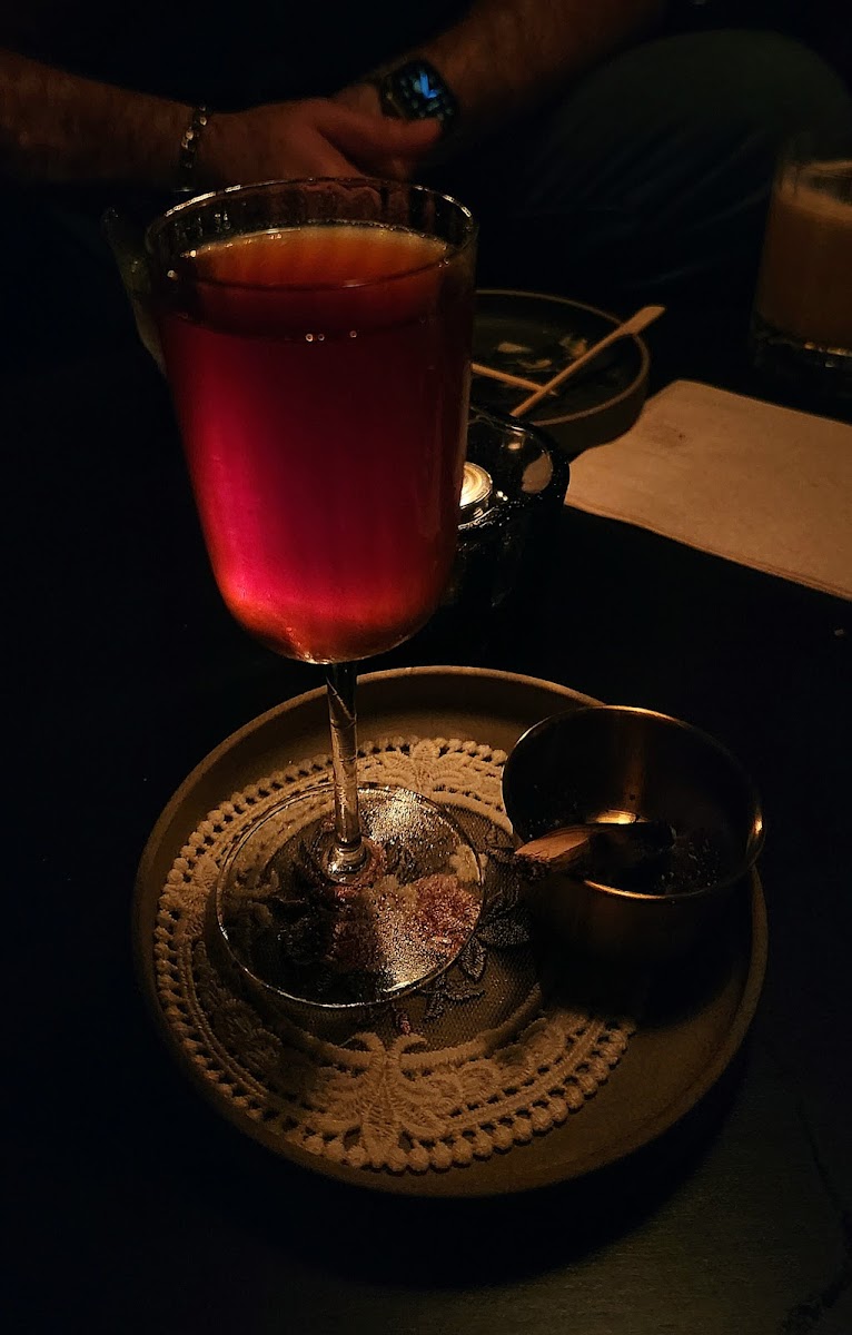 What an amazing spot! First off I love the lack of signage. You'll find this place by seeing the stained glass light and unmarked door. The hostess was a complete gem and added to the experience! Decor, music and the drinks were all a vibe and this place is a must!! All three of us got different drinks and they were all incredible. "Your hand in mine" was my favorite. You will not be disappointed
